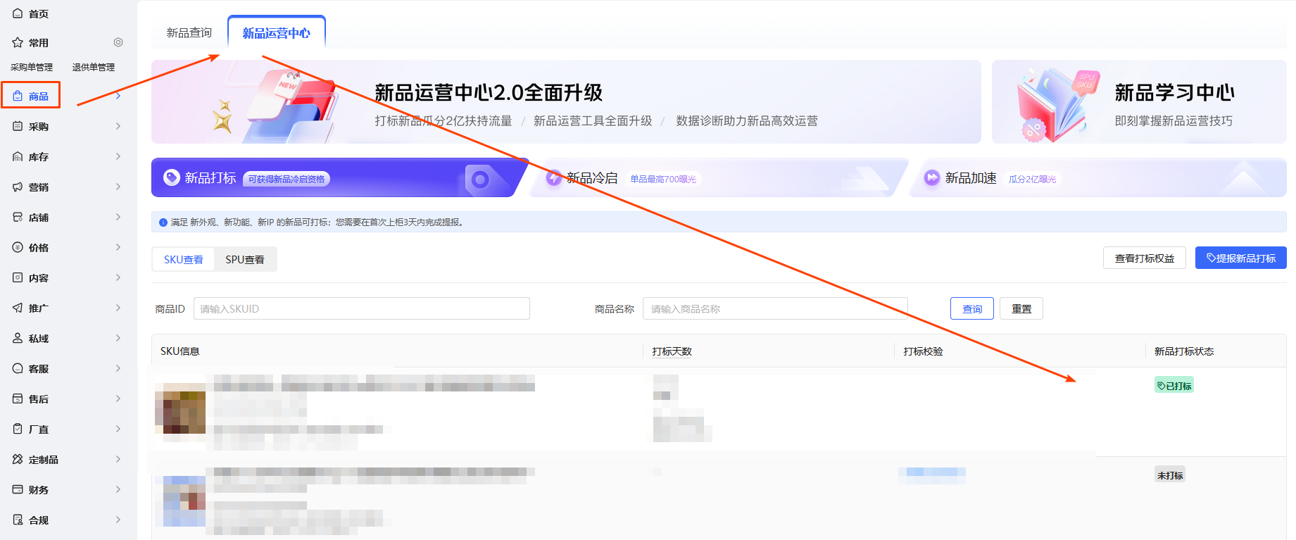 上柜成功后,第一时间申请新品标:商品->商品辅助信息->新品管理