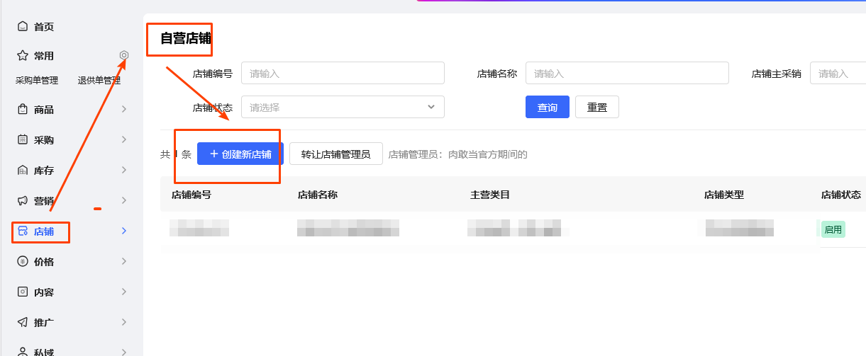 一、Shop供应商后台->店铺->店铺管理->自营店铺->创建新店铺