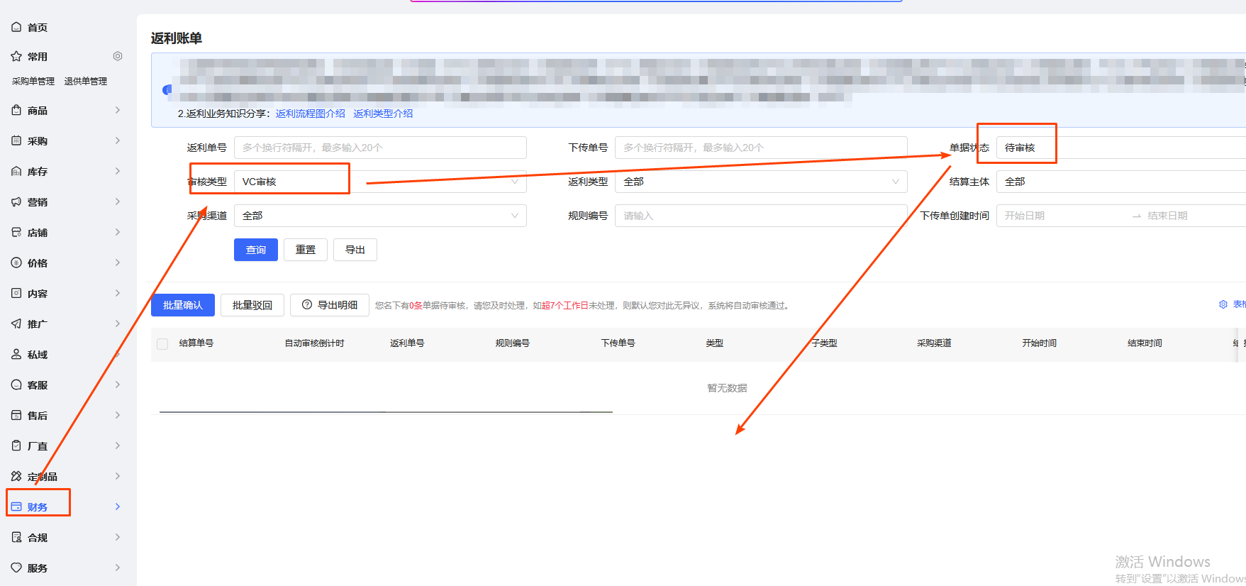 操作路径:Shop供应商后台-财务-返利管理-返利账单