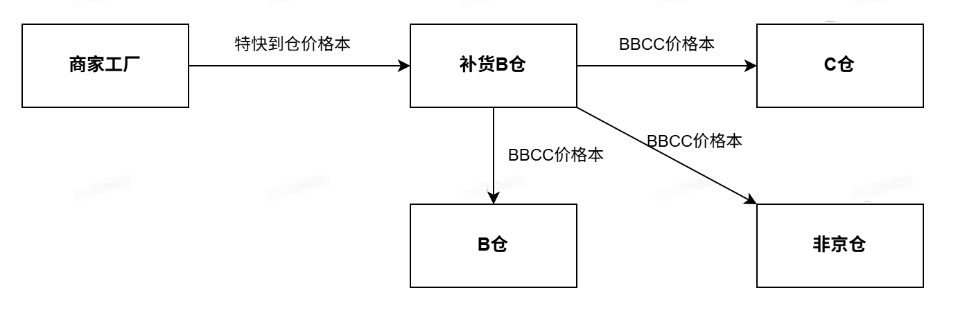 B仓调拨模式包含了两个流程链路,下图是B仓调拨模式的整个过程: